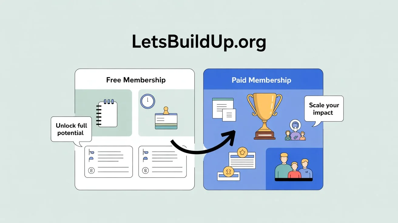 LetsBuildUp.org’s tiered model offers a low-risk free entry, which is great for beginners. If your usage is modest, the free plan may be sufficient. But if you’re aiming for more serious engagement, leading projects or building a network, the paid plans make sense — especially given their relatively modest cost. The key is to evaluate your actual needs, compare them to what paid features provide, and upgrade when the value gained exceeds the cost.